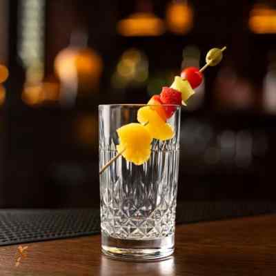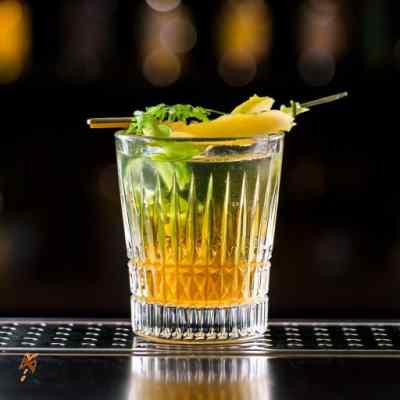 Sì per il cocktail sopra i contenitori sono gli stessi. Il cocktail si fa e si serve nello stesso contenitore, il bicchiere tumbler. Il motivo sta nel fatto che gli ingredienti sono facili da miscelare dato che hanno densità simili per cui il contenitore di servizio è sufficinente ad amalgamarli. Il bicchiere che scegliamo è il tumbler basso in cristallo, un bicchiere universale che è sempre una garanzia di successo per la sua linea sobria insieme a luminosità e maneggevolezza. Non a caso il tumbler basso ha avuto così tanti estimatori nel tempo, da aver acquisito nomi diversi e più romantici come old fashioned oppure più pratici come on the rock