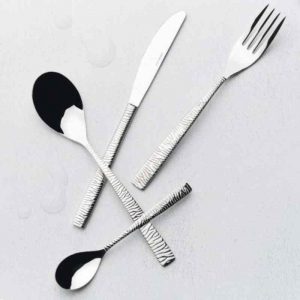POSATERIA; sono per la maggior parte in metallo come acciao inossidabile o argento ma anche in ceramica o legno come le bacchette della cucina orientale. I loro nomi sono quelli comunemente usati anche a casa e sono legati al loro uso. Così una forchetta piccola diventa una forchettina da dessert; ed il coltello senza lama che non taglia, può essere un coltello da pesce
