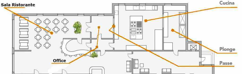 I locali di ristorazione hanno una suddivisione funzionale, significa che la loro differenza dipende da cosa ci si deve fare. I locali primari sono quelli di produzione come il bar, la caffetteria, la cucina. Quelli secondari sono di servizio come office, plonge, dispensa, magazzino, cantina, guardaroba. Quelli invece di vendita sono quegli spazi dedicati ai clienti che nel nostro caso sono la sala ristorante ed ancora il bar, ma la parte esterna al bancone. Tuttavia esiste anche una differenza costruttiva, che se non proprio importantissima per questo capitolo, è comunque bene ricordare. Si tratta della costruzione vera e propria dell’edificio. In questo caso i locali sono: