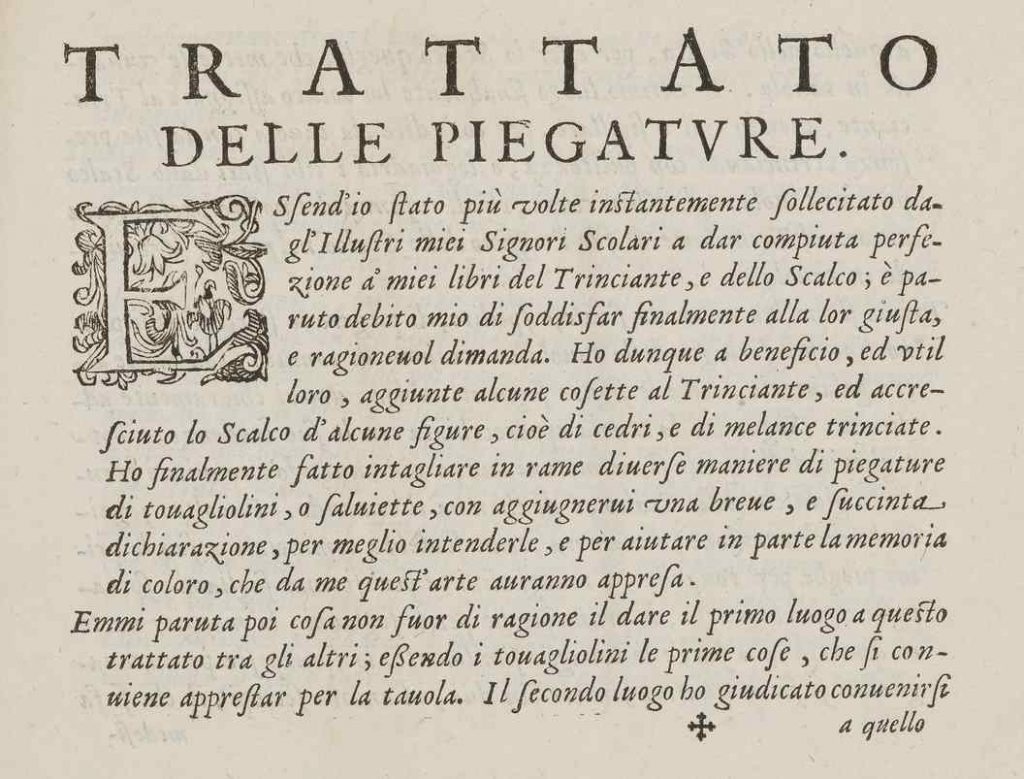 La nascita di questa maniera artistica di presentare una tavola, si fa risalire a Matthia Gieger uno scalcatore di carni tedesco che esercitava la sua arte a Padova agli inizi del 17 secolo. La diffusione si ebbe però almeno un secolo dopo in Francia dove la tecnica sembra essere ormai d’uso tra la nobilità del tempo.